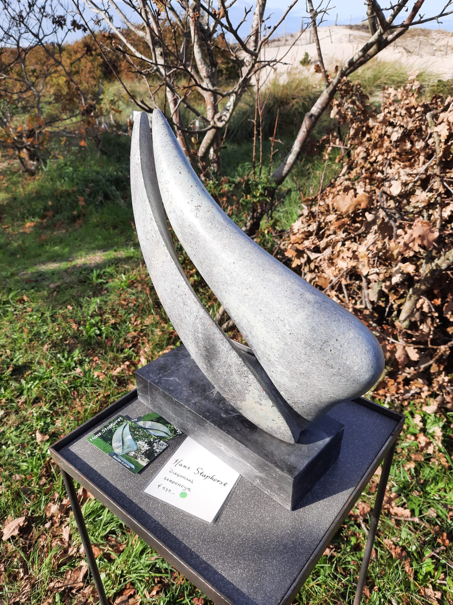 Gerda Koopman, Hans Staphorst, Emmy Buys, Greet de Groot en Marian Groen stonden met de beelden op die prachtige locatie tegen de duinen dicht bij de zee. De beelden kwamen prachtig uit in het landschap. Jammer dat het een aantal dagen slecht weer was. Noodgedwongen werden daarom de beelden neergezet in het schuurtje op het terrein.