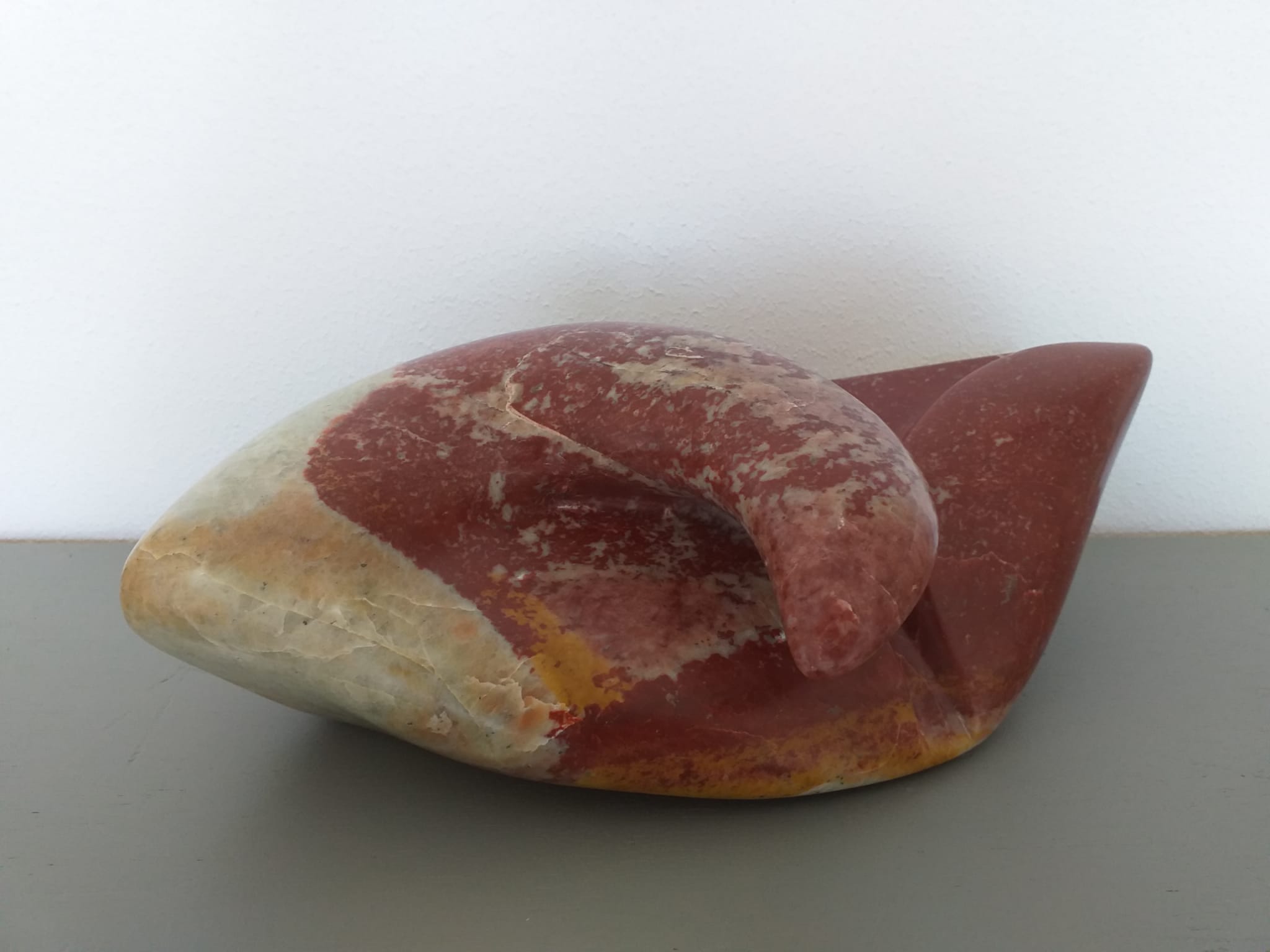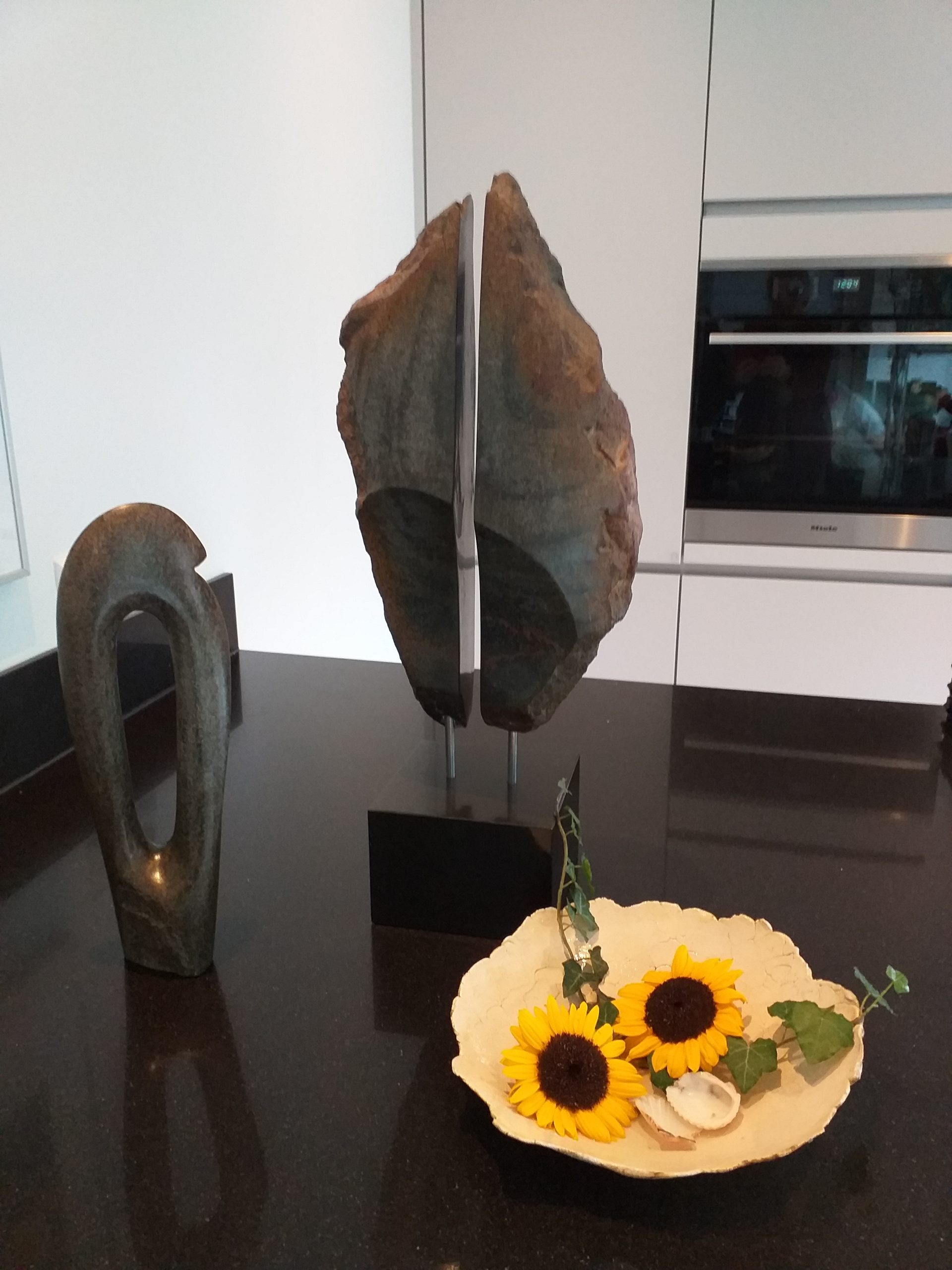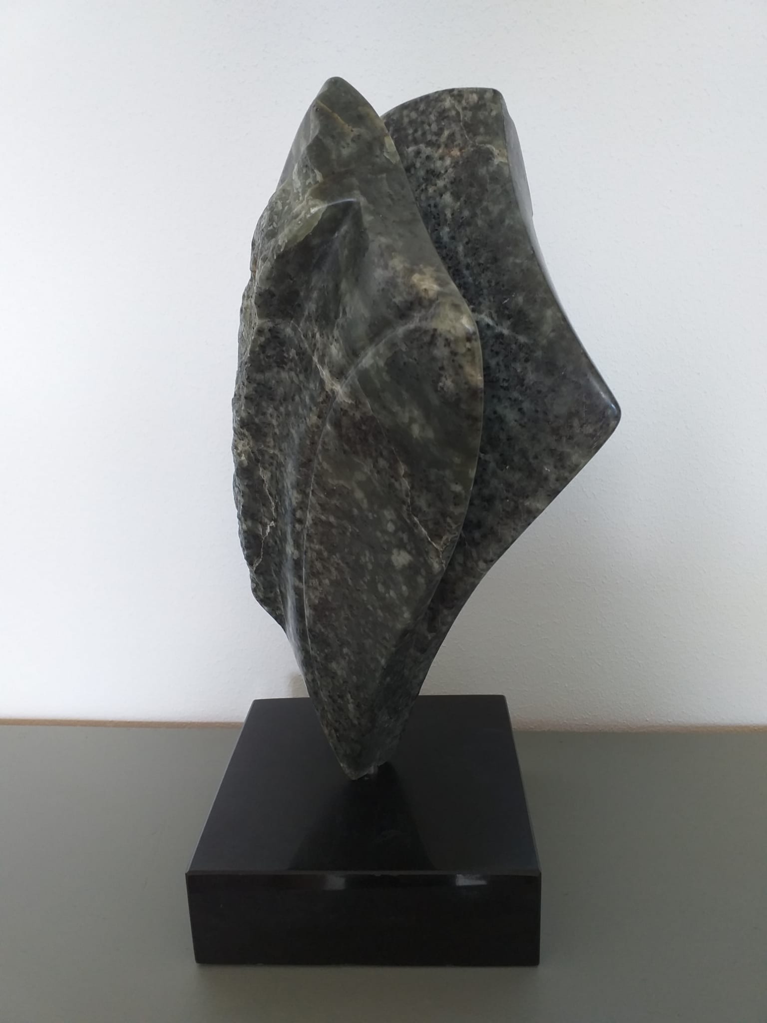 Ik maak abstracte beelden, meestal in serpentijn en albast.