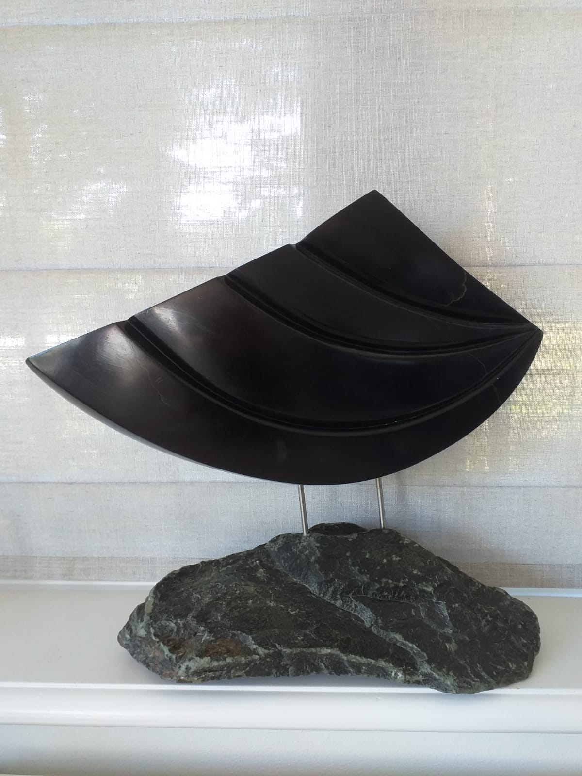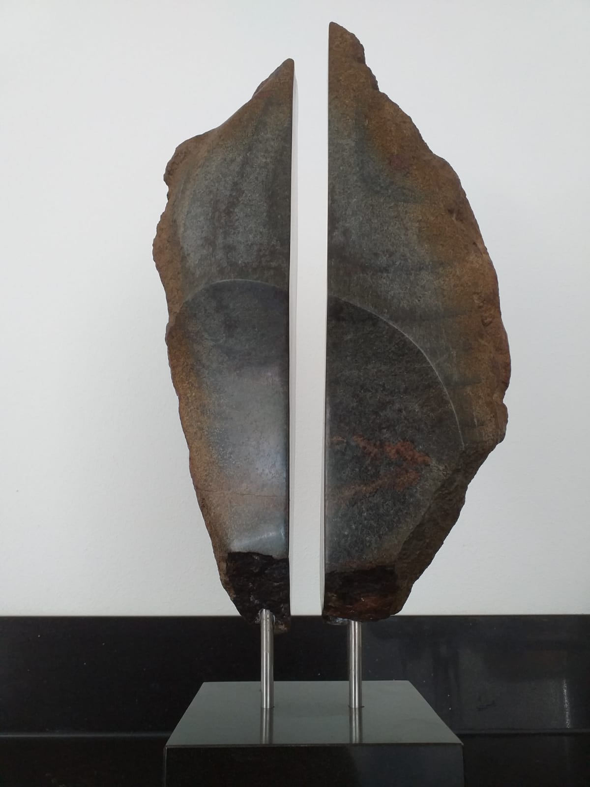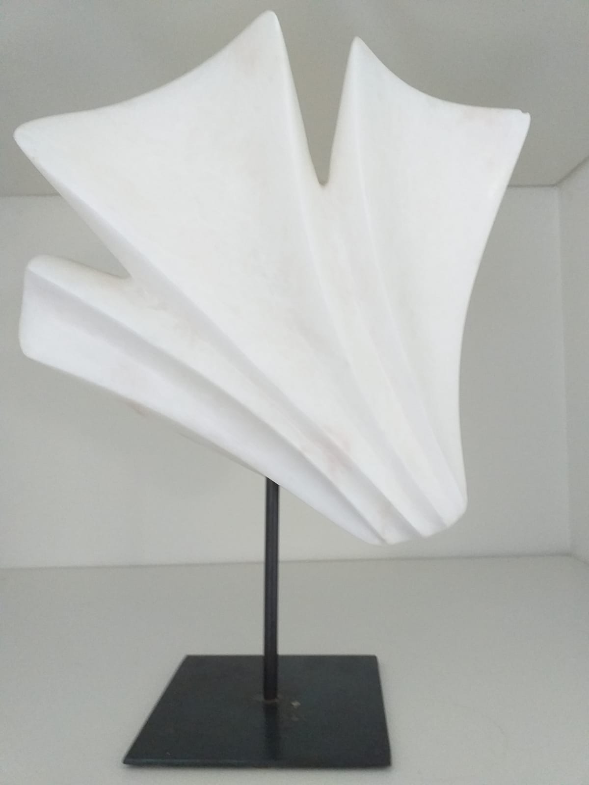 Ik maak abstracte beelden, meestal in serpentijn en albast.