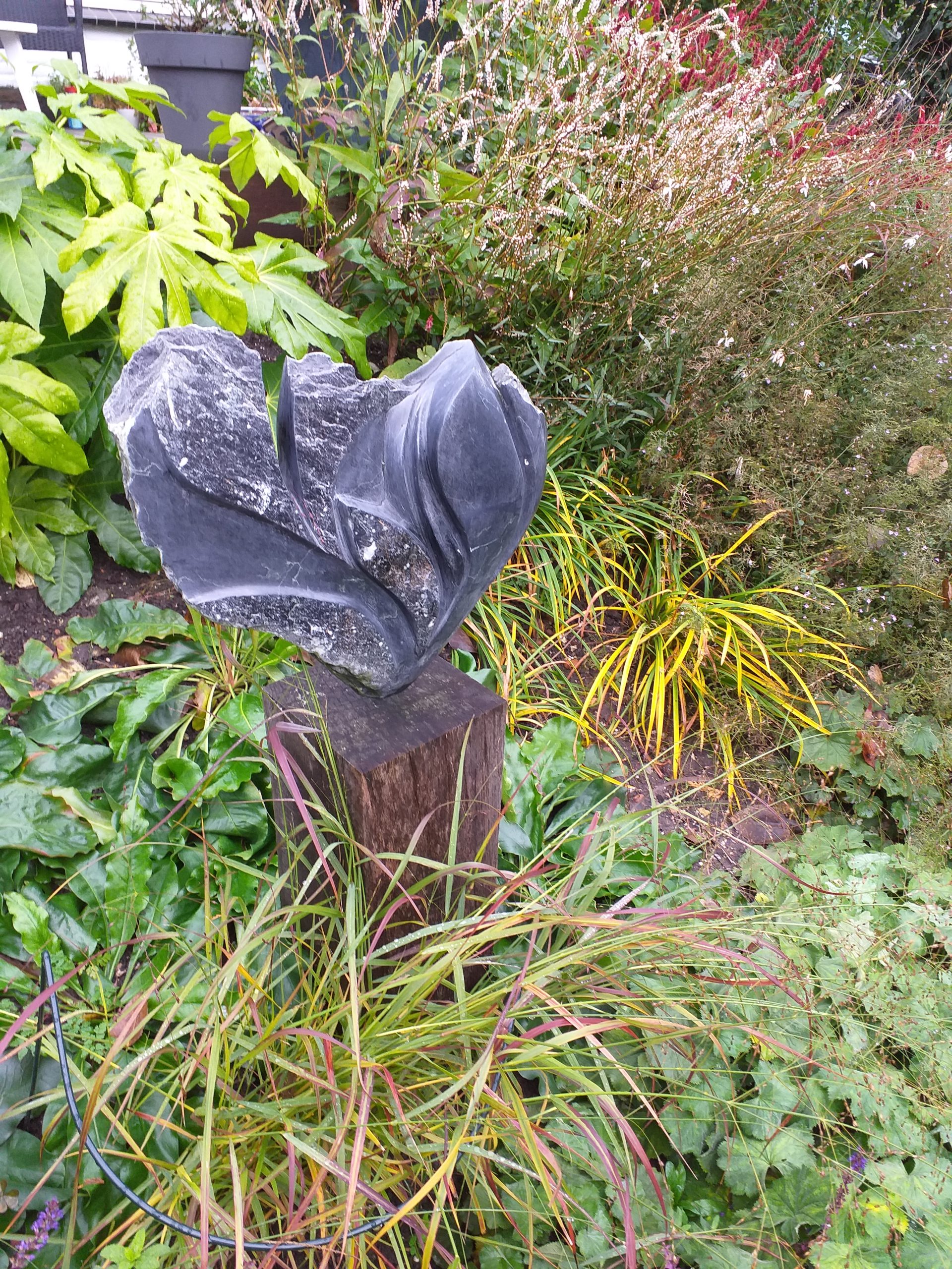 Al kijkend naar en hakkend in de steen ontstaan er mooie vormen en lijnen. Een heel verrassend proces; meestal zonder vooropgezet plan.