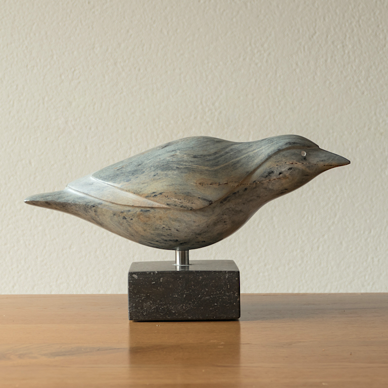 Ik laat mij inspireren door de natuur en met name vogels. Mijn beelden zijn van een Braziliaans of Indiaas speksteen en diverse soorten albast.